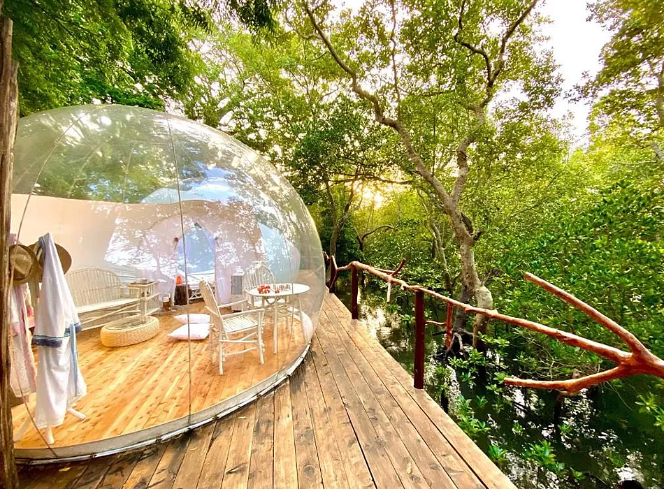 Totally immersed in nature, built according to an eco-friendly design, it is the ideal place to spend unforgettable moments in a unique and incomparable setting. Magical atmosphere and delicious Gourmet food ... that is the way you can summarize this fantastic place.